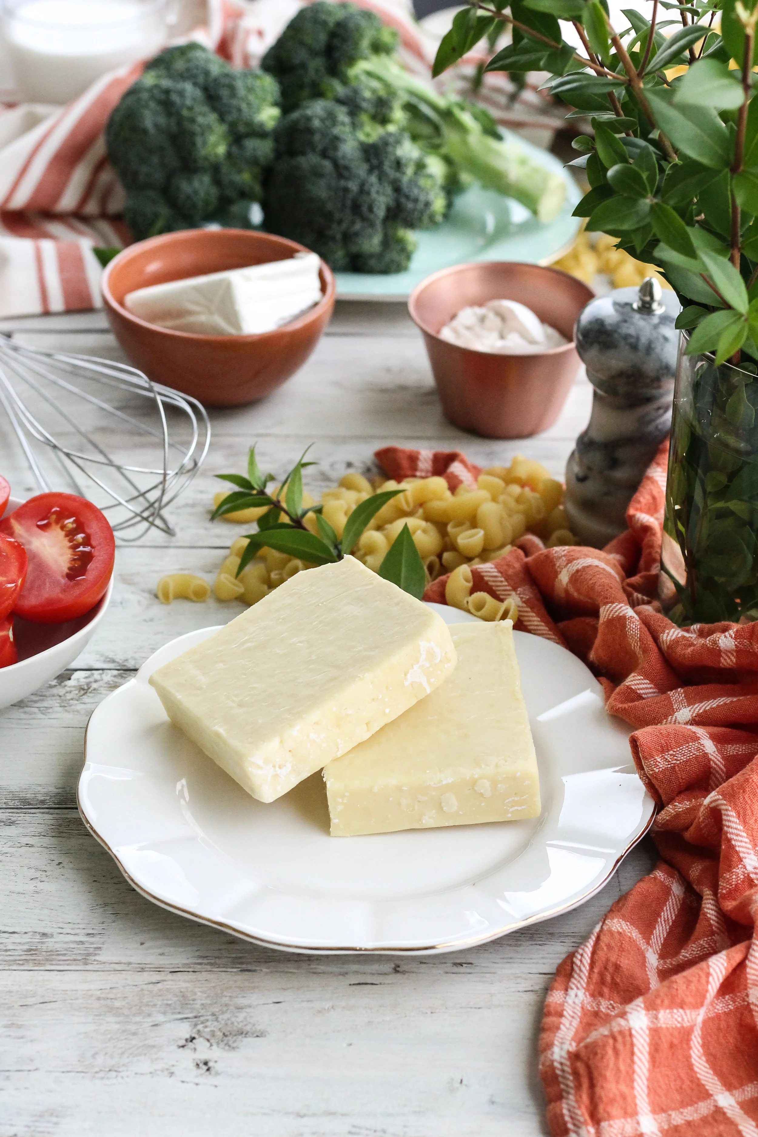 For this macaroni and cheese, I chose a sharp, white cheddar for a satisfying bite, and cream cheese for richness.