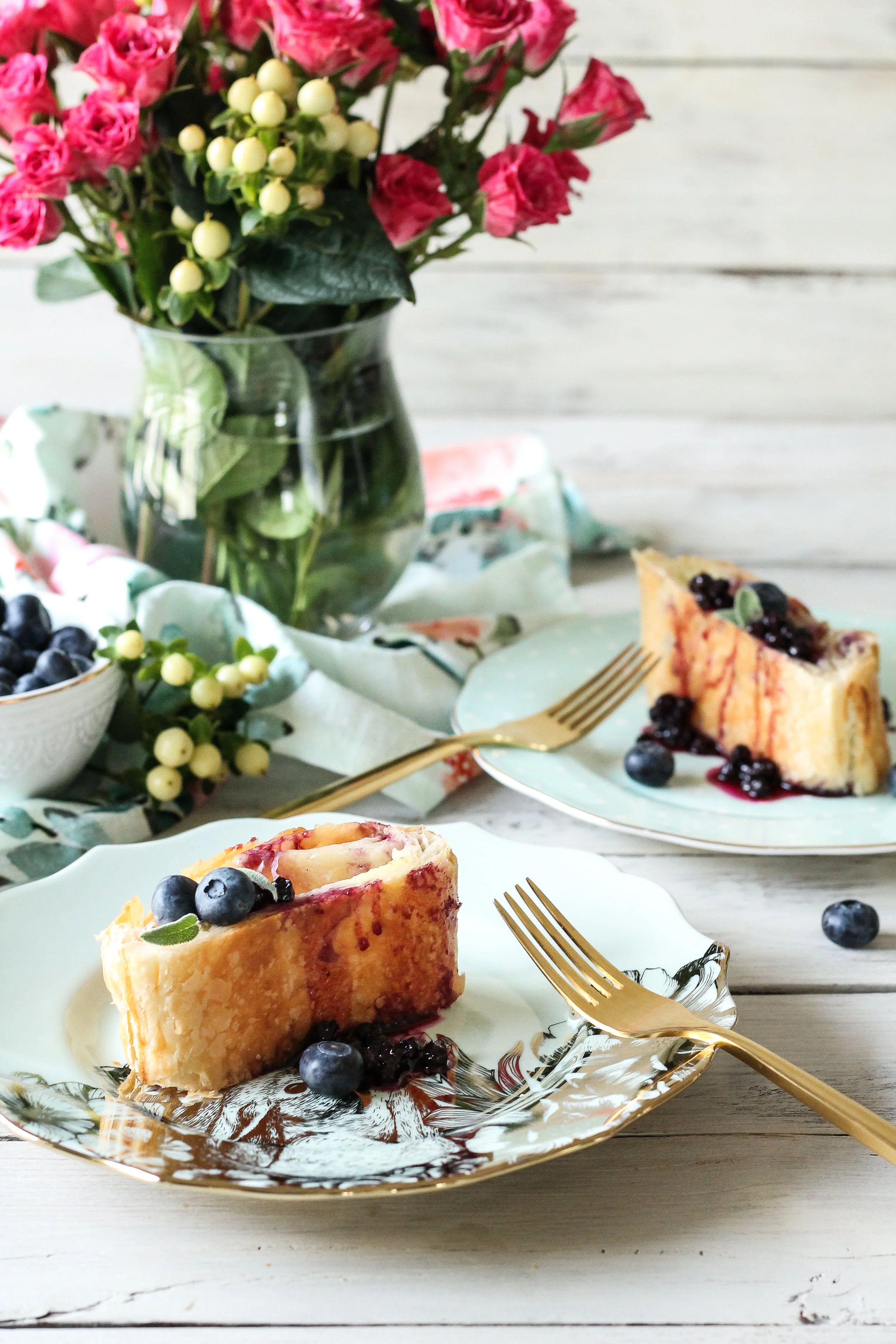 As the pastry bakes, the cheese filling will set to a smooth, cheesecake-like consistency and we will get to work on the most delicious wild blueberry sauce.